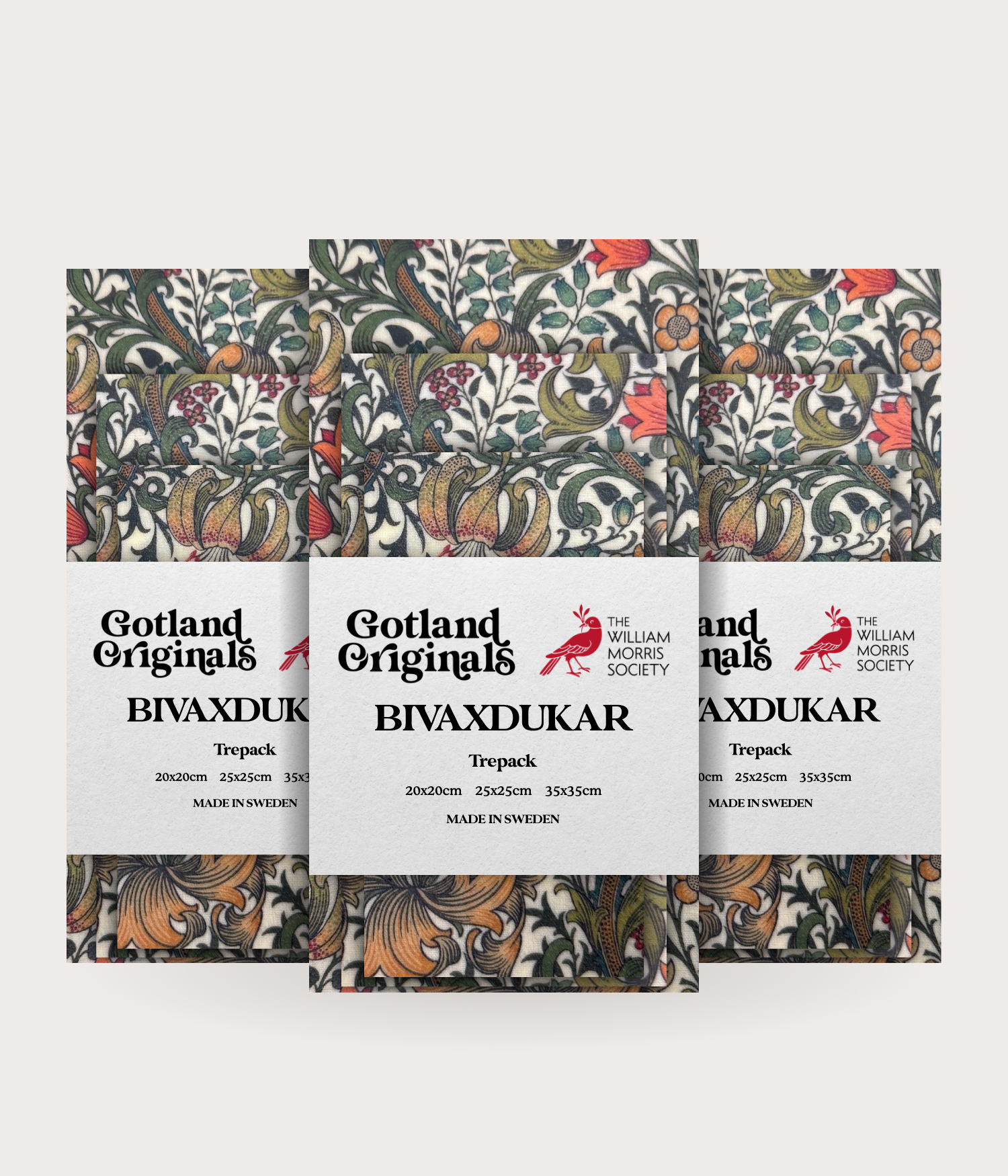 Storlekar i ett trepack: 20x20cm, 25x25cm och 35x35cm.